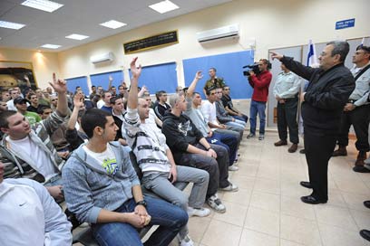 שר הביטחון עם המתגייסים בבקו"ם (צילום: דודו אזולאי)