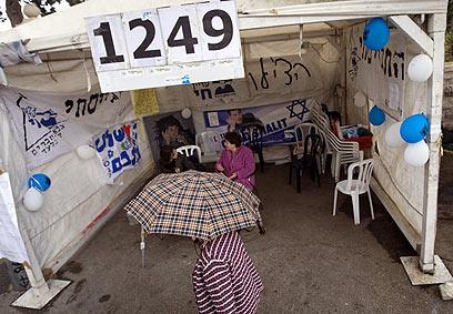 מאהל המחאה למען גלעד שליט, היום בירושלים (צילום: AP)