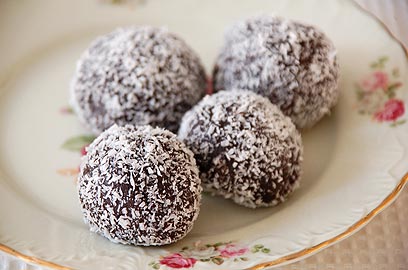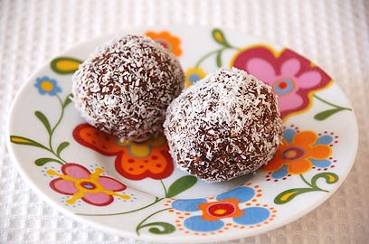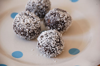 - יוצרים כדורים בעזרת הידיים, מניחים בצלחת וטובלים בצלחת ובה קוקוס. מאחסנים במקרר עד מעט לפני ההגשה.