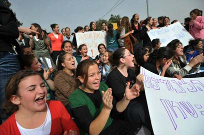 מחאה נגד ההקפאה, היום בקדומים (צילום: AFP)