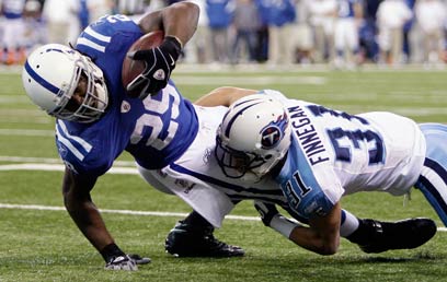 קורטלנד פיניגן מטנסי לא מצליח לעצור את ג'וזף אדיי מהקולטס (AP)
