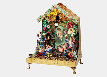 אחת מהחנוכיות המרהיבות שהיא יצרה היא בצורת בית מרובה שכבות בצורת גלוית ברכת פופ-אפ נפתחת, עם שער המעוצב כעין תחרה ובשילובים של קריסטלים מסברובסקי.