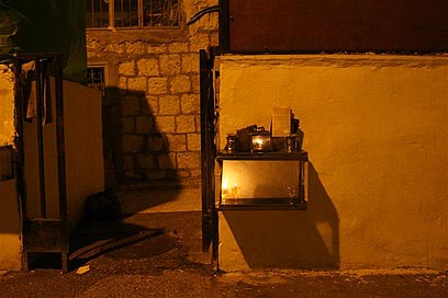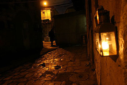 6. סמטה מוארת באור נרות החנוכה בלילה ירושלמי קר