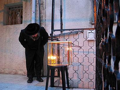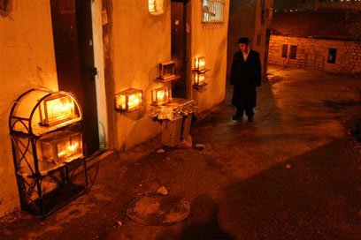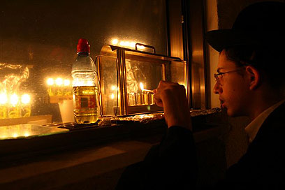 5. המנהג הירושלמי נודד לשכונות חרדיות נוספות: נער ישיבה מדליק חנוכייה בחדרה