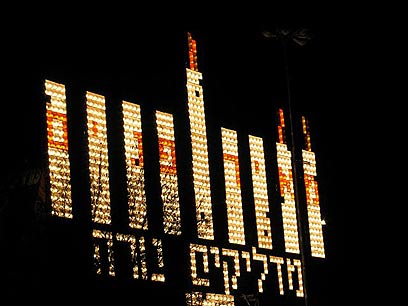 7. חנוכייה עירונית מעשרות נורות מקבלת את פני הנכנסים לבירה