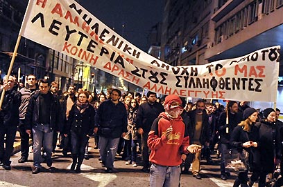 יותר מ-1,000 מפגינים צעדו הערב (יום ג') במרכז אתונה, בירת יוון, לציון יום השנה הראשון להריגתו של הנער אלכסנדרוס גריגורופולוס בן ה-15. המפגינים צעדו ברחובות, אחרי שני ימי מהומות, כשהם נושאים שלטים בהם נכתב בין היתר "שוטרים-חזירים-רוצחים".