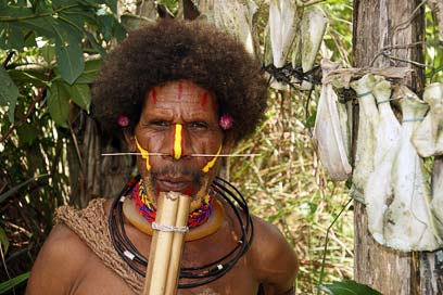 הולי מנגן בחליל מסורתי. ההולים התפתחו בבידוד מן העולם החיצון