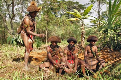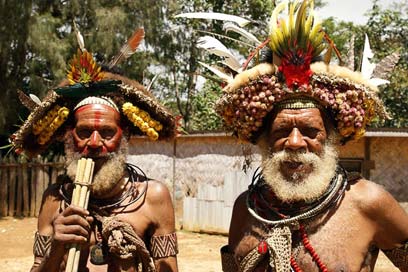 בשלב הבא פגשנו גברים עם פאה יומיומית (Everyday Wig), המוארכת לצדדים. בקרחת היער פגשנו גם גברים שלראשיהם פיאות טקסיות (Ceremonial Wig), המזדקרות כלפי מעלה משני הצדדים, וצבען חום כהה ושחור. כל הפאות היו מעוטרות בנוצות, בפרחים ובעלים. פול סיפר לי שאני האישה הראשונה שמבקרת בכפר שלהם. התיירוֹת המעטות מעדיפות להגיע לכפר קרוב יותר.
