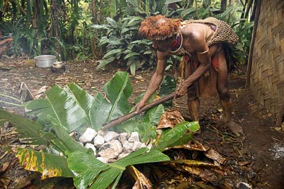 ביום חמישי, 20 באוגוסט 2009, ביקרתי עם תומאס בכפר הרווקים פפגו (Pepego Bachelors Village). תומס שאל אותי איזה כפר ארצה לבקר, ואני בחרתי במרוחק, שאליו צריך לחצות נהר ולטפס הרים. בדרך פגשנו את פול, המורה של הכפר, שהיה לבוש בבגדי יומיום מסורתיים: פאה מעוטרת בנוצות, אזור החלציים מוקף בסריג שאליו קשורים זנבות חזירים, על חזהו מוצלב בילום מחבל ועלים קשורים מאחוריו ולזרועותיו.