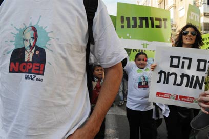 לא הרחק ממנו עמדו שני ילדים עם שלט: "הבנק זרק אותנו לרחוב". א' בת השבע סיפרה ל-ynet: "לקחנו לנו את הבית ועברנו לבית של סבתא. אני רוצה לחזור לחדר שלי שאוכל לשחק ולא יהיה צפוף".
