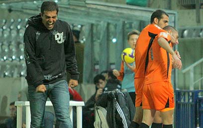 בני יהודה צוהלת עם עטר. החגיגות היו מוקדמות מדי (צילום: עוז מועלם)