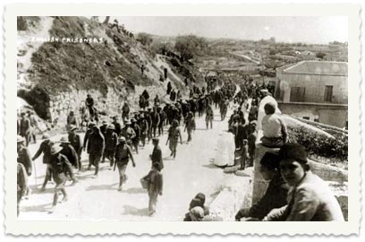 4. ימי מלחמת העולם הראשונה. ב-23 באפריל 1916 התחולל קרב בין הצבא הבריטי לטורקים בקטיה, סמוך לתעלת סואץ. בקרב זה שבו הטורקים 1,500 חיילים בריטים. במאי העבירו קבוצה מבין השבויים ברחובות ירושלים (בתצלום) - 130 חיילים ו-21 קצינים, בהם אלוף משנה. עם החיילים בקבוצת שבויים זו נמנו הודים רבים. למחרת שלחו אותם ברכבת לדמשק. זמן קצר לאחר מכן צעדו החיילים האוסטרלים הראשונים לירושלים