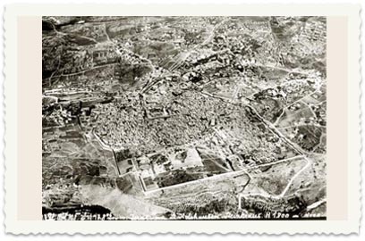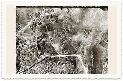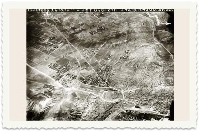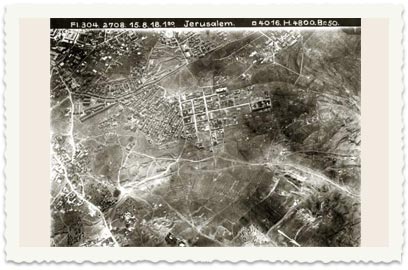 5. במלחמת העולם הראשונה פעל חיל משלוח גרמני בא"י לצד צבא טורקיה. מטוסים גרמניים עסקו בצילום והפצצה בארץ. בתצלום אויר (תצ"א) של הטייסת הגרמנית מס' 304 מ-15 באוגוסט 1918 מעל ירושלים נראות שכונותיה הצפוניות: מאה שערים, הבוכרים ובית ישראל