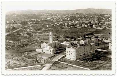 13. ירושלים, תצלום אויר אלכסוני משנות ה-30 לעבר ימק"א ומלון המלך דוד