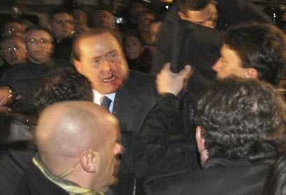 במהלך עצרת במילאנו, תקף גבר בן 42 את סילביו ברלוסקוני ופגע בו בפניו באמצעות אגרופיו או בחפץ. ראש ממשלת איטליה נלקח לטיפול רפואי כשהוא מדמם. התוקף, בעל עבר של בעיות נפשיות, נעצר. ברלוסקוני שבר את אפו ושתיים משיניו