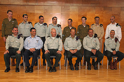 שמונת מקבלי הצל"שים (עומדים), בטקס היום באשקלון (צילום: דובר צה"ל)