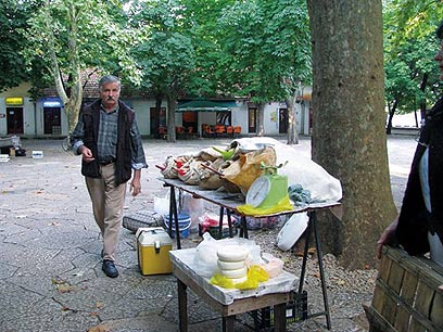 "סיר איז מייה", גבינה בתוך עור, במרכז השוק של טרבינייה