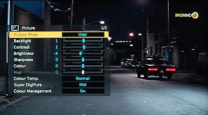 פרמטר הגאמה אינו ניתן לשליטה, וכפי שנראה בהמשך, זה היה יכול לעזור. את מנגנון הניגודיות הדינמית בדגם הזה מומלץ להפעיל, מה שמשפר את הניגודיות במצבים רבים. ניתן לבחור גם במצבי תמונה מוגדרים מראש, כגון Standard, Game ו- Soft שמקביל למצב Cinema במסכים אחרים. תפריטי האודיו, מאפשרים לשלוט על טרבל, בס ועוד. כמו כן, אפשר לקבוע האם יציאת האודיו הדיגיטלית תעביר אות אודיו PCM או אות דיגיטלי "מקורי" (RAW) אל רסיבר קולנוע ביתי.