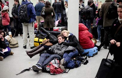 כאוס ברכבות. אלפים חיכו במשך שעות לרכבות מעוכבות (צילום:AFP)