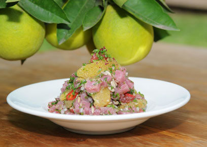סביצ'ה טונה עם תפוז, אשכולית וגרעיני חמנייה (6 מנות)