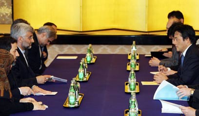 שר החוץ של יפן קטסויה אוקדה בפגישה עם ג'לילי (צילום: AP)