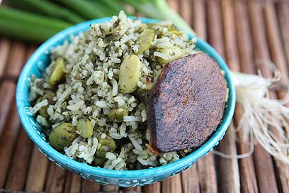 אורז ריחני ירוק ומשגע המוגש בחגים לצד מנות דגים וקבב. מי שלא אוהב פול יכול להחליף אותו באפונה.
