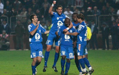 שחקני נצרת חוגגים עם צ'ם נטויה את שער היתרון (חגי אהרון)