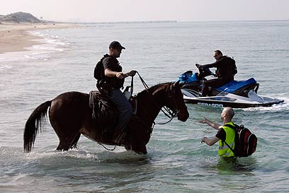 העימות בין השוטרים למפגינים גלש למים (צילום: רויטרס)