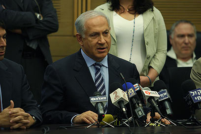 "הצעתי לה שותפות אמיתית". נתניהו בישיבת הסיעה (צילום: גיל יוחנן)