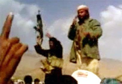פעילי אל קעאידה בתימן, בסרטון שפורסם ברשת. נקמת פעולה אמריקנית בתימן (צילום: AP)