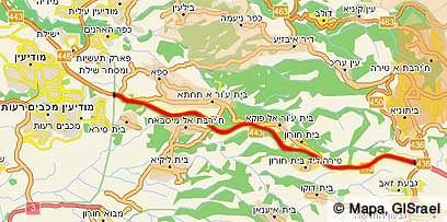 כביש 443. הקטע המסומן באדום ייפתח לתנועת פלסטינים