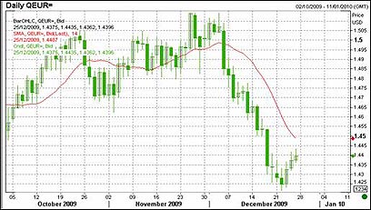 כאמור, לקראת סוף השנה הנוכחית, ניכר כי מגמת השיפור שחלה בארה"ב, מקדימה את מגמת השיפור והתאוששות במדינות הגוש. כתוצאה, ניכרת חזרה ברורה לדולר על חשבון האירו. מהלך התחזקות הדולר מול האירו בתקופה האחרונה איננו עניין של מה בכך. האירו פוחת מול הדולר ברמה של כ- 7%! מהלך לא קטן זה, מצביע בברור על מגמה במלוא מובן המילה.