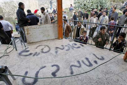"תג מחיר - ד"ש מאפי". הכתובת שרוססה במסגד שהוצת (צילום: AP)