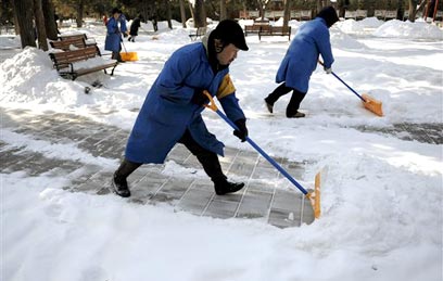 פעם ב-70 שנה: סופת שלג קשה פוקדת בימים האחרונים את צפון-מזרח סין ואת חצי האי הקוריאני. יותר מ-30 סנטימטרים שלג ירדו בבייג'ינג בסוף השבוע האחרון, ואילו בסיאול נערמו בתוך יומיים 26 סנטימטרים - שיא של 70 שנה. החזאים צפויים כי מזג האוויר באזור ישתפר רק בעוד יממה או שתיים.