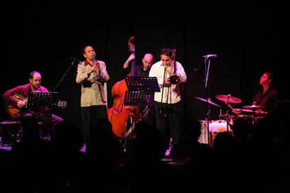 ומסמן לחבריו להרכב להצטרף אליו ללא חשש. הנגנים חסרי המורא שנבחרו ללוות את כריסטופר, הם מהטובים, אם לא מהטובים ביותר, בישראל על הכלים שלהם. החיבה המופגנת של כריסטופר לגיטריסט עמוס הופמן ברורה לאור אלבומו האחרון של הקלרניטיסט, שמוקדש לנגן הגיטרה האגדי דג'נגו ריינהארט. הופמן, שמרבה לנגן על עוד בשנים האחרונות, ניגן נהדר וקיבל הזדמנות לסולואים ארוכים ויצירתיים כמו שאר חבריו. אסף חכימי על הקונטרבס לא צריך לנגן סולו כדי להראות שהוא מאסטר על הכלי שלו. הטרומבוניסט יונתן וולצ'וק, שעשה עליה לאחרונה, היה מצויין ובן לוויה הולם לכריסטופר בקדמת הבמה. שי זלמן נהנה כהרגלו ונתן בסיס קצב מרגיע ובטוח לחבריו.