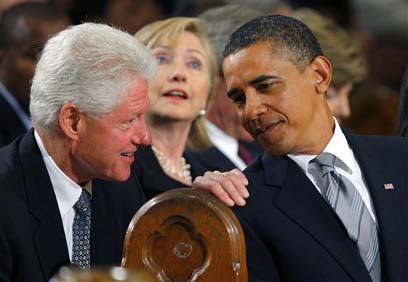 "פעם היית מכין לנו קפה...". קלינטון עם אובמה (צילום: AP)