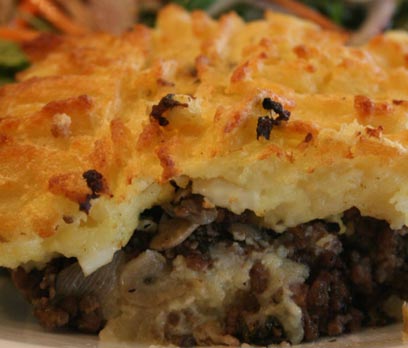 שכבות של תפוחי אדמה, בשר טחון ומטוגן וביצים קשות בגרסה כשרה ל"שפרד'ס פאי" מתכון אנגלי מוכר ואהוב. מוסיפים סלט רענן ומקבלים ארוחה מלאה