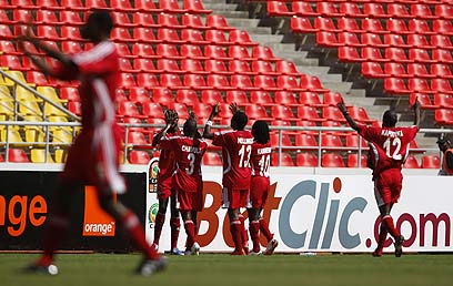 שחקני מלאווי חוגגים את השער של ראסל מוואפולירווה (צילום: AP)