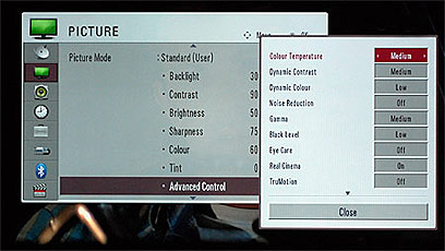 תפריט הגדרות התמונה כולל כמעט כל מה שמשתמש ממוצע יזדקק לו, הגדרות תמונה מתקדמות מאפשרות שליטה על מנגנון ניגודיות דינמית, גאמה, החלקת תנועה ועוד.