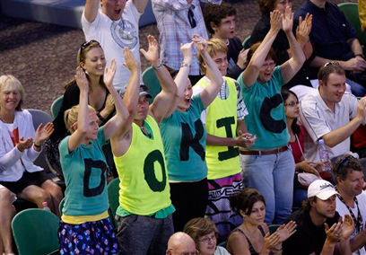 האוהדים של דוקיץ'. הנוסעת בטיסה לא במחנה איתם (צילום: AFP)