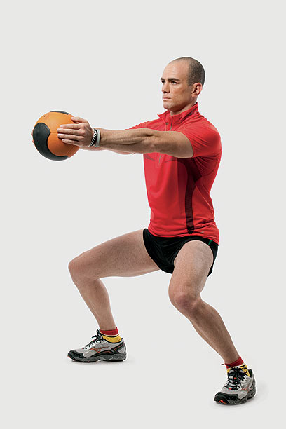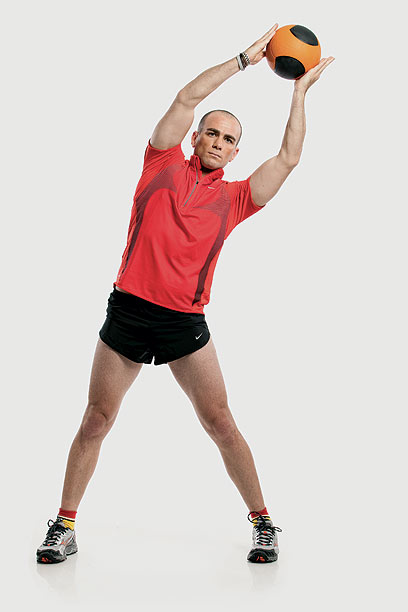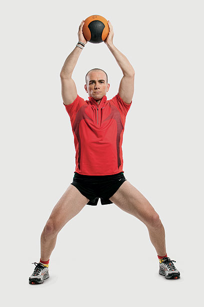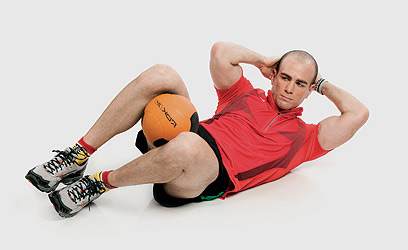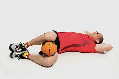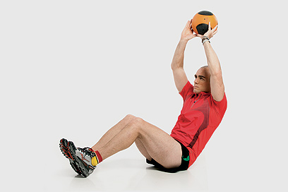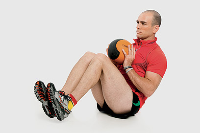 מה תצטרך: כדור כוח של 4 או 5 ק"ג ו־20 דקות לעצמך, 3־4 פעמים בשבוע.