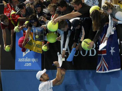 נאדאל מסמן 'וי', במפגש מול לאז'ק האוסטרלי (צילום: גטי אימג'ס)