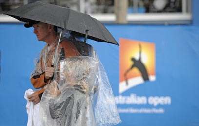 אוהד מתוסכל מנסה להינצל מהמבול במלבורן (צילום: AP)