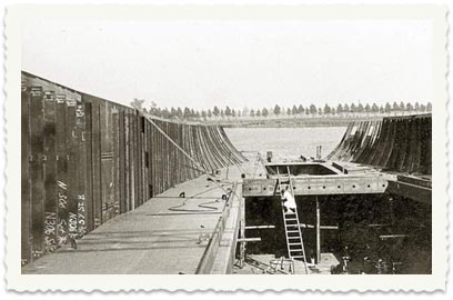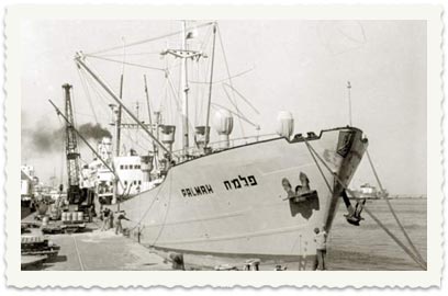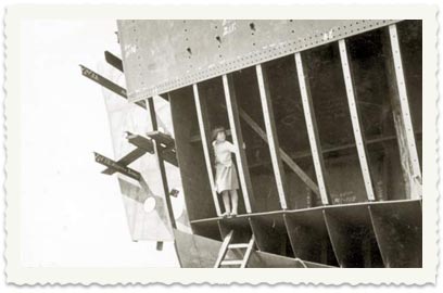 4. בשנות ה-60 הצטרף אייק לחבריו מ"הקיבוץ המאוחד" שהקימו חברת ספנות ודייג. בשליחות החברה נסע למספנות בהמבורג שבגרמניה, שם בנו את האונייה "פלמ"ח", הנראית בתצלום זה ובתצלומים 5 ו-6. בתצלום זה נראית בתו של אייק, אלה, בירכתי ה"פלמ"ח" בעת בנייתה