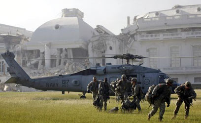 ארצות הברית כבר שיגרה 11 אלף חיילים ונחתים למשימות סיוע, חילוץ וביטחון. אלפי חיילים אמריקנים נשלחו לאבטח את תורי חלוקת המזון, בעוד הצבא ממשיך להצמיח אלפי חבילות סיוע באמצעות מסוקים. חיילים במסוקים של צבא ארה"ב נחתו מחוץ לארמון הנשיאות החרב. צלם של סוכנות "רויטרס" דיווח כי נראה שמדובר בחיזוק משמעותי למאמצי הסיוע האמריקני, והחיילים חמושים ומצויידים בציוד קרבי מלא.