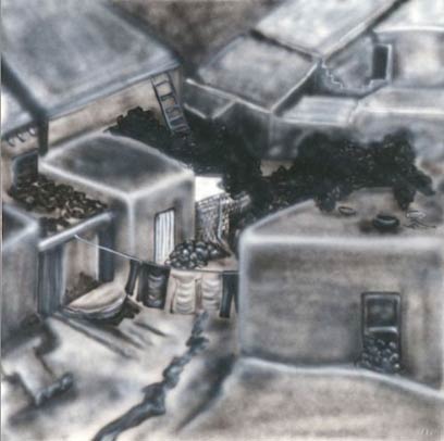 ראני אלזהרווי, ללא כותרת, התזת אקריליק על בד, 2009 מתוך התערוכה "גברים בשמש" שאצרו טל בן צבי וחנא פרח – כפר בירעים