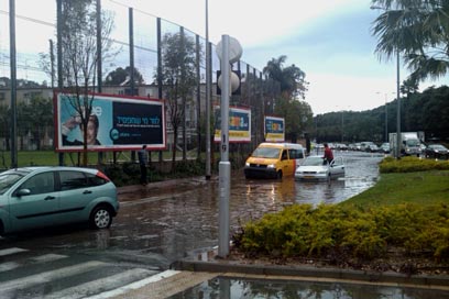 הצפה בדרך ההגנה ליד איצטדיון קריית-אליעזר בחיפה (צילום: אמיר משולם)