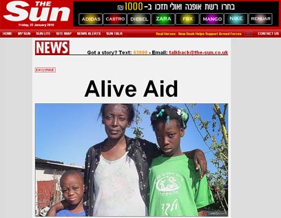 אגב, הדיווח הפותח בעיתון ה"סאן" הבריטי עסק הבוקר בשני אחים שהוצלו מבין ההריסות ביום שלישי, וטופלו בבית החולים הישראלי.