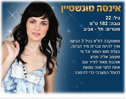 עלינו לארץ כשהייתי קטנה ובעוד להוריי המעבר היה קשה, אני הרגשתי מיד צברית לכל דבר. לאורך השנים חזרנו לביקורים במוסקבה שם מתגוררים הסבים שלי אבל בשבילי זה בסך הכול טיול והמקום היחיד שאני מרגישה בבית הוא בישראל. בכיתה א' כבר הייתי הכי גבוהה בכיתה, כינו אותי: "עמוד חשמל" או "בת יענה", ובעיקר סבלתי מהבנים הנמוכים בכיתה שהציקו לי. היתרון היחידי שהיה אז הוא שהצטיינתי בקפיצה לגובה בזכות הרגליים הארוכות שלי. כשגדלתי, הבנתי שהגובה שלי הוא יתרון ובגיל 12 כבר קיבלתי הצעות לדגמן וגיליתי שאני מאד אוהבת את המצלמה.