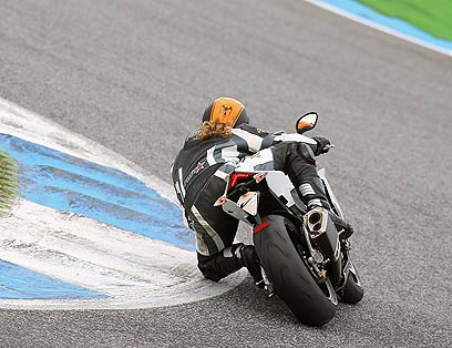 הקלישאה הכי פופולרית שמושמעת בשנים האחרונות על אופנועי ליטר היא "היגוי של 600" - הווה אומר איזה קטע, הנה כלי מהיר וקליל מהצפוי לאופנוע עם נפח מנוע של 1,000 סמ"ק וצפונה. ומה אתם יודעים: ל־RSV4 יש היגוי של 600. אפשר להפליק אותו אל תוך הרדיוסים בלי תשומת לב וכוח מיותרים, וזה מפנה אותך לעבודת גז נדיבה שמייצרת תופעות הזויות. למשל הצלפות של הכידון ימינה ושמאלה במקומות לא הגיוניים על המסלול; אלה מעידות שהגלגל הקדמי חידש הרגע את המגע עם האספלט, ולי לא היה מושג בכלל שהוא המריא. זה קטע עם מכונות שיש להן יחס הספק־משקל של כ"ס אחד לק"ג אחד. רק כלים כאלה יכולים לדחוף את הקדמי לאוויר תוך כדי הטיה, ואז לצאת בווילי לא מתוכנן לישורת האחורית - ישורת שגם בשלב הזה של היום אני עדיין לא מצליח לעבור את הקינק ימינה שלה בלי לעזוב לרגע את הפול גז ברביעי.